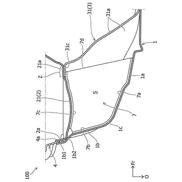 ところで、サイドボディアウタパネルの後部が車幅方向内側に屈曲している場合がある。つまり、サイドボディアウタパネルが、車両前後方向に延びるアウタパネル側壁部と、アウタパネル側壁部の後端から車幅方向内側に延びるアウタパネル後壁部と、を有する場合がある。この場合には、サイドボディアウタパネルの後部の屈曲した部分(以下、後側角部という)は、後側角部の両側に連続する概ね平坦な部分(つまり、アウタパネル側壁部及びアウタパネル後壁部)の剛性より高い剛性を有し、後側角部の両側の部分(アウタパネル側壁部及びアウタパネル後壁部)は後側角部の剛性より低い剛性を有することになる。