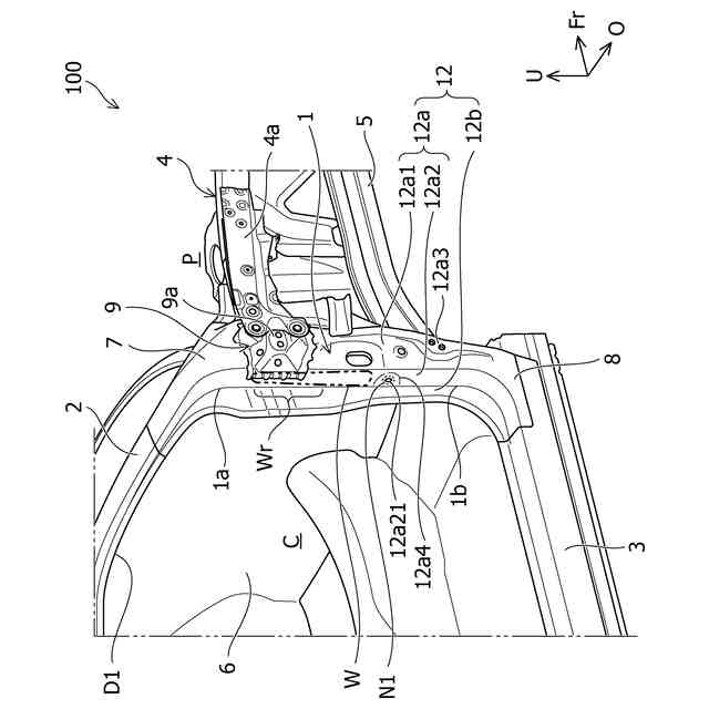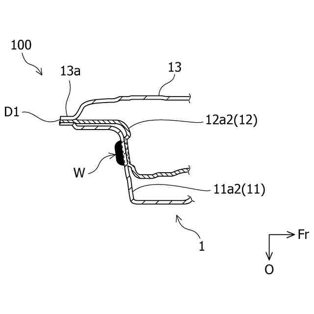 車両側部構造における外側後壁と内側後壁との接合構造について説明するための図である。