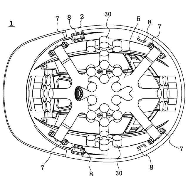 従前、保安用のヘルメットにおいてスチロール材を備えた衝撃吸収ライナーが存在していた。スチロール材からなるライナーは、衝撃吸収においては一定の効果があるものの夏場に熱が籠りやすく、例えば特許文献1に示すように近年は帽体内部に樹脂製の突起物からなる衝撃吸収体を備えたヘルメットが開発されている。一方、特許文献2に示すように、突起物が帽体から離れた状態を維持し、外部衝撃を受けたときに規制するヘルメットも提供されている。