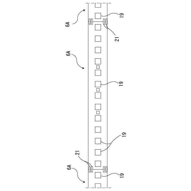 前記基板は、単一の帯状の回路実装部を有するか、或いは、一直線状に並べられ且つ隣接する端部同士が電気的に接続された複数の回路実装部を有するものとしてもよい。