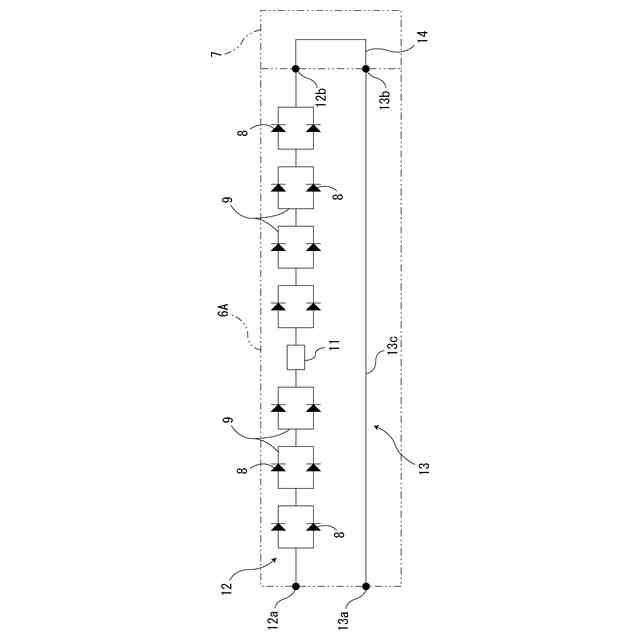 直列接続された複数の発光ダイオード又は直列接続された複数の前記発光回路と、前記定電流素子とを直列に接続して閉回路とし、