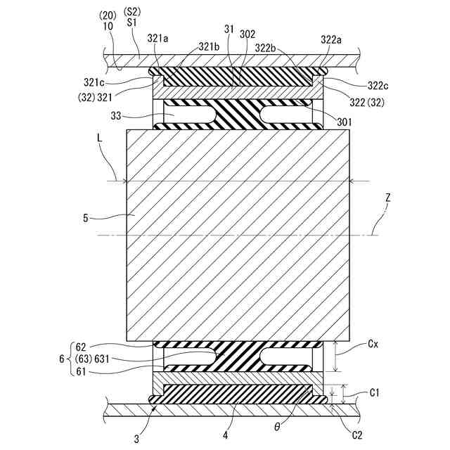 本発明は、その一態様として、筒状部材には軸方向の両端部の外周面に端壁部がそれぞれ設けられていて、軸方向に切断した断面において径方向から視たときに、第1弾性部材の径方向長さが前記筒状部材の前記端壁部の径方向長さよりも大きくなっている。
