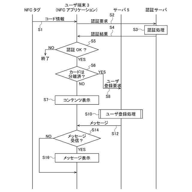 ユーザを識別するユーザ識別情報に関連付けられた処理を行うための通信端末が、前記無線タグから、前記情報担持媒体の前記第1部分と前記第2部分とが分離されたか否かを示す分離情報を取得し、