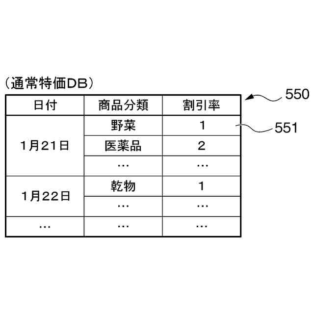 通常特価データベースが記憶する通常特価情報の一例を示す図である。