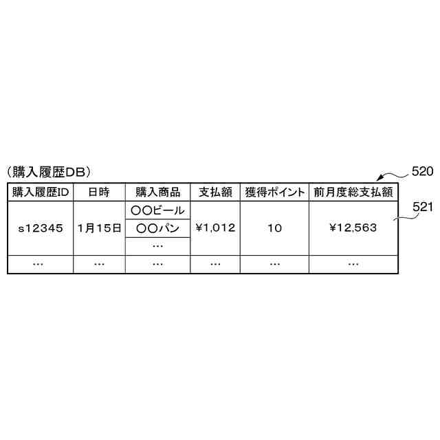 購入履歴データベースが記憶する購入履歴の一例を示す図である。