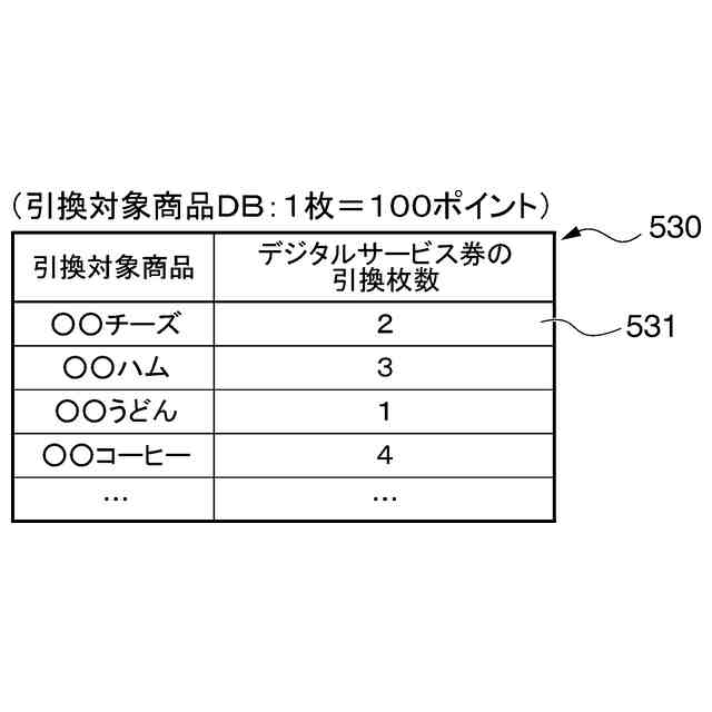 引換対象商品データベースが記憶する引換対象商品情報の一例を示す図である。