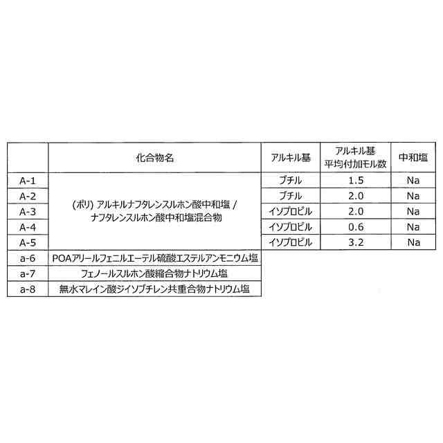 芳香族化合物(A):(アルキル)ナフタレンスルホン酸およびその中和塩から選ばれる少なくとも一つ