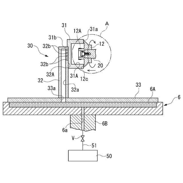 前記柱の側面に配置されて前記端面修正砥石の前記研削面とは反対側の面を吸引する吸引面に開口する吸引口と、