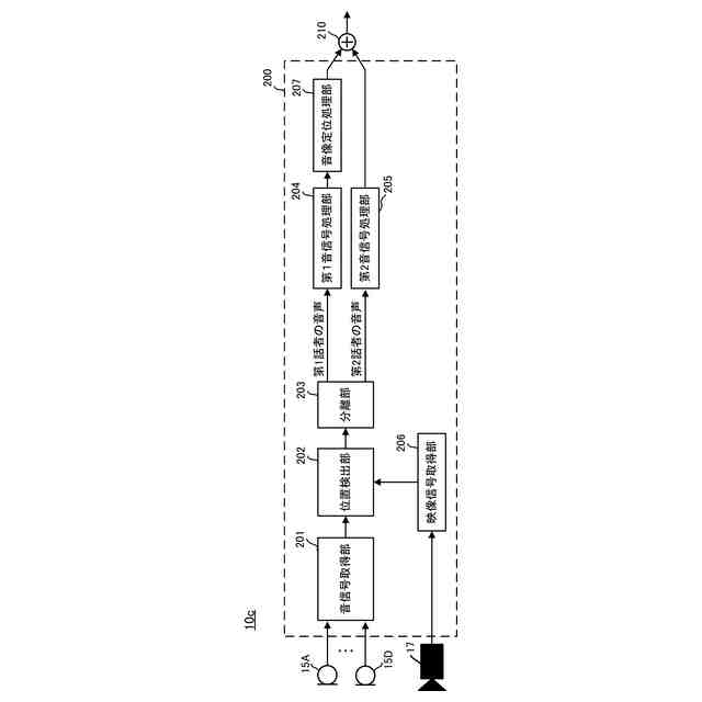 主たる第1話者および前記第1話者以外の第2話者の音声を含む音信号を取得する音信号取得部と、