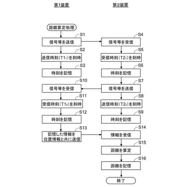 複数の前記第1装置のそれぞれと前記第2装置との間の情報又は信号の伝搬時間に基づき、前記複数の第1装置のそれぞれと前記第2装置の距離を算定する距離算定ステップと、