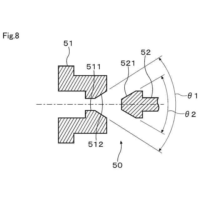 前記受け部材のうち前記ポペットが接触する受け面の角度と、前記ポペットのうち前記受け面に接触する接触面の角度とが異なっている、
