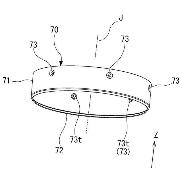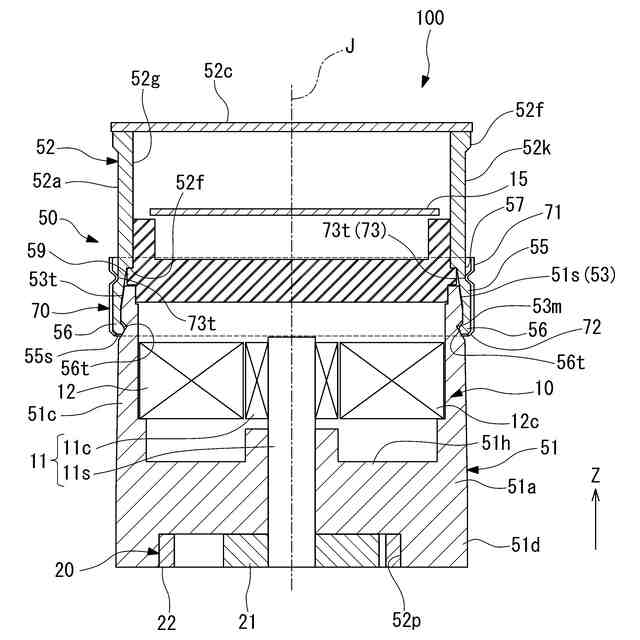前記移動拘束部は、前記リング状部の内周面から径方向内側に突出し、前記凹部に挿入されるカシメ突起を有する、