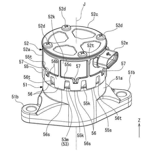【解決手段】ロータ、ステータを収容し、軸方向一方側に開口する第1ハウジングと、基板を収容し、第1ハウジングのハウジング端部を軸方向一方側から覆う第2ハウジングと、環状の拘束部材と、を備える。第1ハウジングは、第1ハウジングの外周面に設けられる被連結部を有する。第2ハウジングは、ハウジング本体と、ハウジング本体に対して軸方向他方側に位置する連結部と、を有する。連結部の弾性片は、径方向に弾性変形可能であり被連結部に径方向外側から連結される。拘束部材は、複数の弾性片を径方向外側から覆うリング状部と、リング状部の軸方向他方側の端部から径方向内側に突出し、連結部の軸方向他方側の第1端部に対して軸方向他方側から突き当たる突出部と、リング状部に設けられ、連結部に対するリング状部の軸方向他方側への移動を制限する移動拘束部と、を有する。