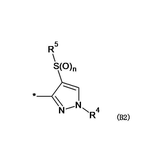 式(I)中、Bは、式(B1)で表される基、または式(B2)で表される基であり、