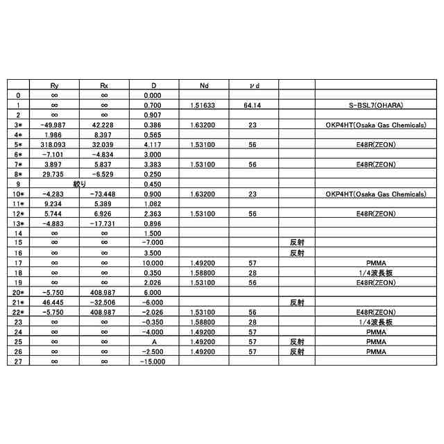 数値実施例3の光学系及び表示装置を示す第1の断面図である。