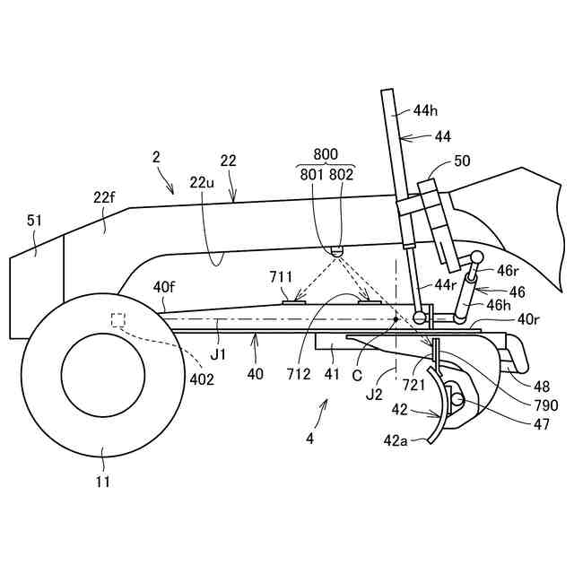 特許文献1のモータグレーダでは、複数の光学ターゲット(識別用マーカ)を別々のカメラで撮像することにより、ブレードの姿勢を求めている。これに限らず、ブレードの姿勢は、ドローバの姿勢から比較的容易に求めることができる。よって、ドローバの姿勢を算出できれば、ブレードの姿勢を求めることができる。