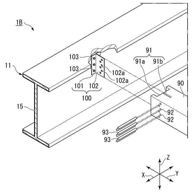 スラブは、平板状である。スラブは、大梁及び小梁に支持されている。大梁及び小梁には、水平鋼板が跨って接合されている。