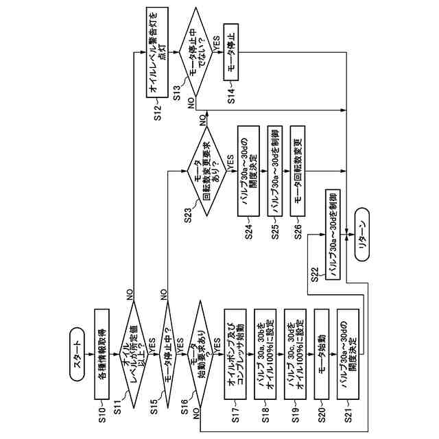 本発明において、好ましくは、制御装置は、モータの動作中において、上記1つ以上の冷媒通路からのオイルの含有率が、他の冷媒通路からのオイルの含有率よりも大きくなるように、複数のオイル含有率調整バルブのそれぞれを制御するように構成されている。
