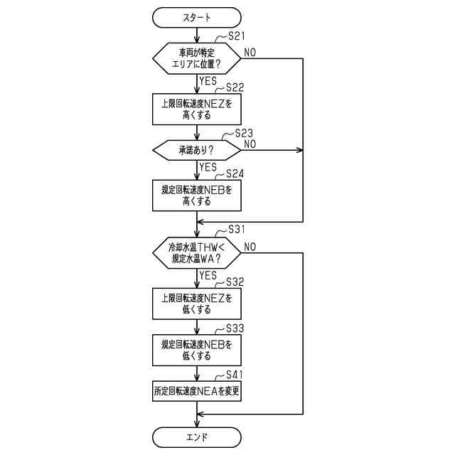 前記車両が予め定められた特定エリアに位置している場合に、前記車両が前記特定エリアに位置していない場合に比べて前記上限回転速度を高くする第2変更処理と、