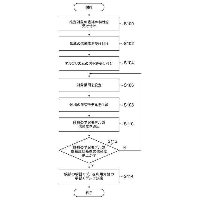 前記決定部は、前記設定部に複数の候補の対象期間を設定させ、前記複数の候補の対象期間について前記生成処理を実行することで、前記生成部に複数の候補の学習モデルを生成させ、さらに、前記導出部に前記複数の候補の学習モデルの信頼度を導出させ、前記複数の候補の学習モデルのうち、前記信頼度受付部で受け付けられた前記信頼度を満たし、かつ対象期間が最短の候補の学習モデルを前記利用対象の学習モデルと決定する、請求項3に記載の学習モデル生成装置。