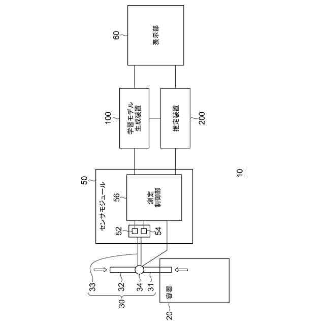 対象物から発生する少なくとも1つの物質に反応して物理的に変化し、物理的な変化に応じた信号を出力する感応部を有するセンサが、対象物に曝されていない第1状態から、前記対象物に曝される第2状態に切り替わってから、再び前記第2状態から前記第1状態に切り替わるまでの検出期間において、前記センサから出力される信号の波形の特徴量に基づいて、前記対象物の特性を推定する学習モデルを生成する生成部と、