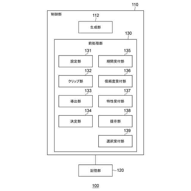 前記設定部に候補の対象期間を設定させ、前記クリップ部に前記候補の対象期間の前記信号をクリップさせ、前記生成部に前記候補の対象期間の信号の波形の特徴量を説明変数、前記対象物の特性を目的変数として機械学習させることで候補の学習モデルを生成させる生成処理を複数の候補の対象期間について実行することで、前記生成部に複数の候補学習モデルを生成させ、前記複数の候補の学習モデルのそれぞれの対象期間及び信頼度の組み合わせを提示する提示部と、