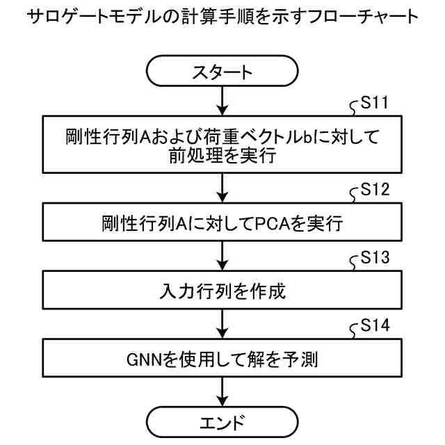 構造物の剛性行列を第1学習モデルに入力することで、前記第1学習モデルから出力された第1出力結果を取得し、