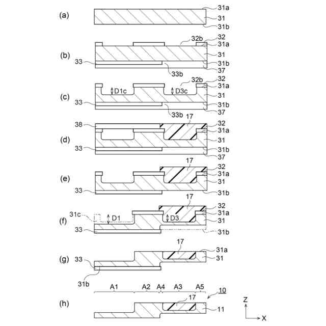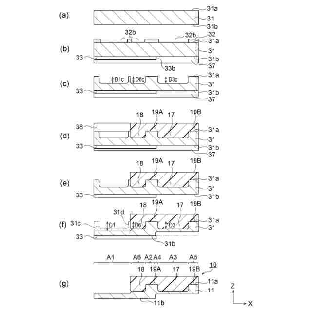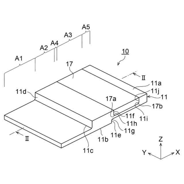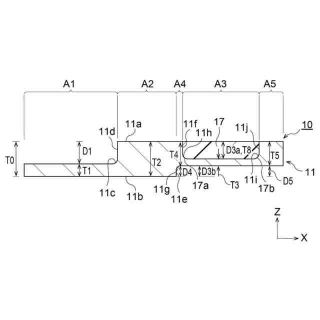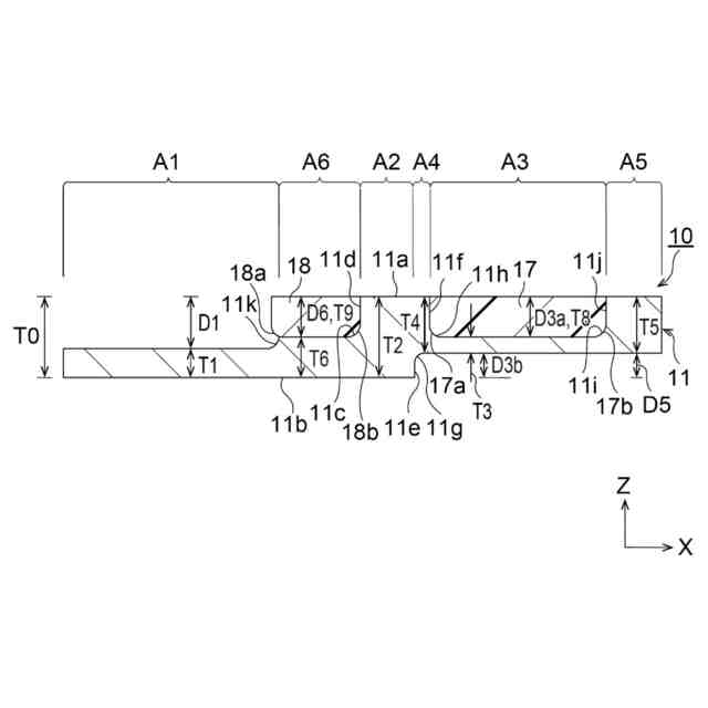 前記第6領域は、前記第1面側から薄肉化され、前記第2面側から薄肉化されておらず、