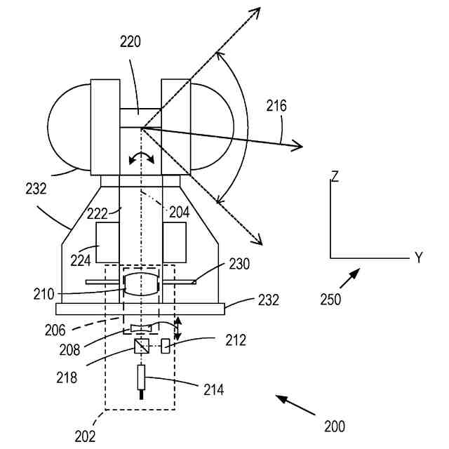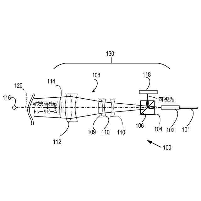 実際の実施態様では、カメラは、プローブ(測定)ビームとビジュアルアライメントに使用されるポインティング(またはトレーサ)ビームの両方を受け取るターゲット表面を撮像する。カメラは、ターゲットイメージを生成するように調整されるレンズを含み、プローブビームおよびトレーサビームは、別個の調整可能なレンズを用いてターゲット上にイメージされる。視覚/可視イメージ用に異なるレンズを使用し、IRプローブビーム用にビーム集束レンズを使用することにより、簡単なレンズ設計が可能になる。残念ながら、2つの可動レンズを使用するには、それぞれに移動または他のステージが必要であり、カメラ軸とプローブビーム軸とのアライメントを維持することは困難であり、アライメントのずれは、粗いビジュアルアライメント以上に、カメラ画像を使用することを困難にする。