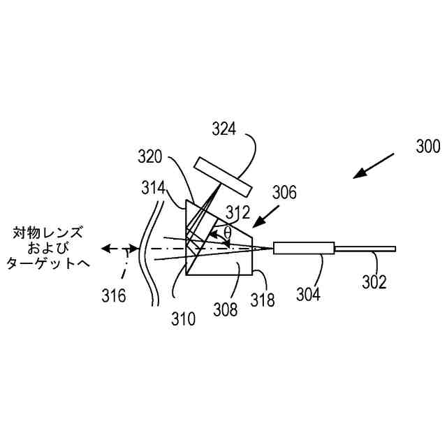 さらなる実施形態では、ダイクロイックビームスプリッタは、可動レンズに面する第1の表面と、イメージングビームをイメージセンサに向け、ターゲットから戻されるプローブビームの一部を光ファイバに向けるように配置されたダイクロイック反射面とを含む二重反射ダイクロイックビームスプリッタである。他の実施形態では、ダイクロイックビームスプリッタは、可動レンズに面する第1の表面と、イメージングビームが第1の表面によってイメージセンサに反射され、ターゲットから光ファイバに戻されるプローブビームの一部が反射面によって光ファイバに送られるように、イメージングビームを第1の表面に向けるように配置されたダイクロイック反射面とを含む二重反射ダイクロイックビームスプリッタである。さらに追加の例では、ダイクロイックビームスプリッタは、可動レンズに面する第1の表面と、ターゲットから戻されたプローブビームの一部を第1の表面に向けるように配置されたダイクロイック反射面とを含む二重反射ダイクロイックビームスプリッタであり、イメージングビームは、ダイクロイック反射面によってイメージセンサに送られる。他の代表的な例では、第1の表面は、ダイクロイック反射面から受け取られたイメージングビームに対して臨界角よりも大きい角度に配置され、二重反射ダイクロイックビームスプリッタは、出力面を含み、出力面は、ターゲットから戻され、ダイクロイック反射面によって第1の表面に反射されたプローブビームの一部が反射されて出力面に垂直に入射するように配置されている。いくつかの実施形態では、二重反射ダイクロイックビームスプリッタは、第1の表面とダイクロイック反射面との間の頂角βを有する第1のプリズムを含み、βはsin