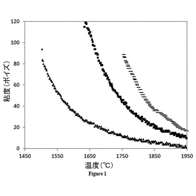 しかし、高シリカAES繊維の製造は、非常に高い融点および「短い」粘度曲線のため、困難である。「短い」粘度曲線は、繊維化に適した粘度の温度領域が狭いということを意味し、繊維の品質だけでなく、製造上も大きな課題となる。シリカの含有量が多い場合、AES化学は融点が高くなる。例えば、79重量%のシリカを含むマグネシアシリカ化学の液相線温度は1800℃より高くなり、液相線温度での粘度はたった50ポイズ程度と低くなる。液相線温度が高いため、このような溶融物を溶融して繊維化するためには高温が必要である。例えば、前述のマグネシアシリカ化学の原料を溶融してマグネシアシリカ繊維に繊維化するためには、2100℃の温度まで加熱する必要がある。このような高い融点は、炉の条件および設備に厳しい課題を突きつけ、炉の内張り、電極、および繊維化装置などの設備の寿命を著しく劣化させる。高温断熱ウールは、通常、繊維化のために底部から出る溶融ストリームを持つ浸漬電極炉で原料を溶融することによって製造される。高い融点または運転温度は、電極、炉壁、およびスピニングホイール(スピニング法による繊維化工程)の腐食を加速し、それらの寿命を短くする。また、高温で溶融する場合、溶融物と冷却媒体との間の大きな温度勾配により、入力エネルギーの大部分が炉の周囲の冷却媒体に伝達される。