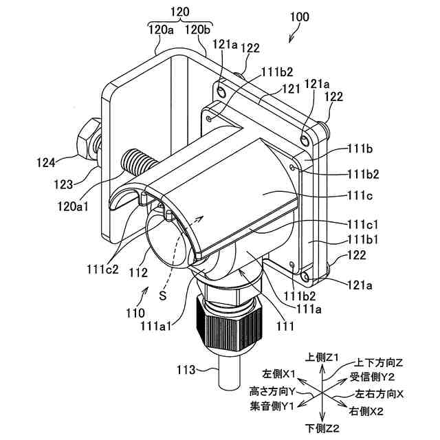 前記音センサを前記スピーカのホーンの内側に向けて保持する保持部と、を備え、