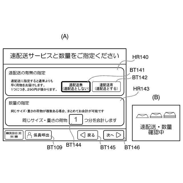 本発明は、このような事情に鑑みてなされたもので、その目的は、客自身が配送の受付を好適に実施するための技術を提供することにある。