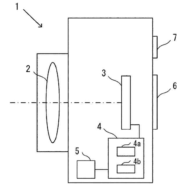 制御部4は、CPUやFPGA、ASIC等のプロセッサ、及びROMやRAM等のメモリによって構成され、制御プログラムに基づいてカメラ1の各部を制御する。制御部4は、画像データ生成部4aと、焦点検出部4bとを有する。画像データ生成部4aは、撮像素子3から出力される撮像信号に各種の画像処理を行って画像データを生成する。画像処理には、例えば、階調変換処理、色補間処理、輪郭強調処理等の公知の画像処理が含まれる。
