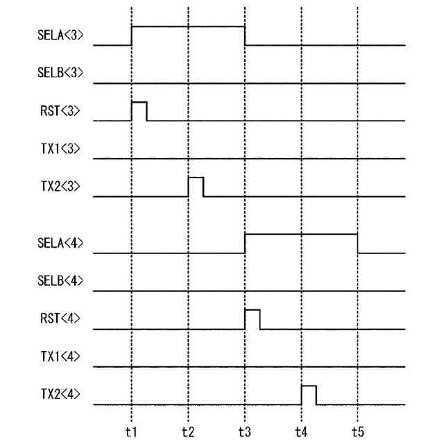 変形例1に係る撮像素子の動作例を示すタイミングチャートである。