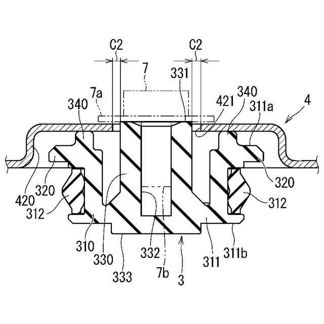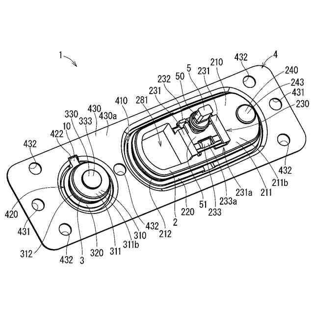 【解決手段】第1ネジは、第1シール部材の中央から、第1シール部材と第2シール部材との並び方向の一方側にずれた位置に取り付けられている。第1シール部材は、シールドカバーを第1クリアランスがある状態で貫通し、第1シール部材の回転を規制する突起部を有する。突起部は、第1シール部材の中央から並び方向の他方側にずれて位置する。突起部は、シールドカバーの表面の凹面に設けられた開口から前記シールドカバーの外側に突出する。
