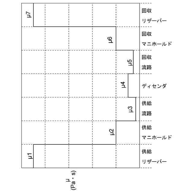 前記流路は、前記循環流量が前記目標流量であるときに、前記ディセンダにおける前記液体の平均粘度が前記回収流路における前記液体の平均粘度の1.5倍以上となる流路形状を有している
