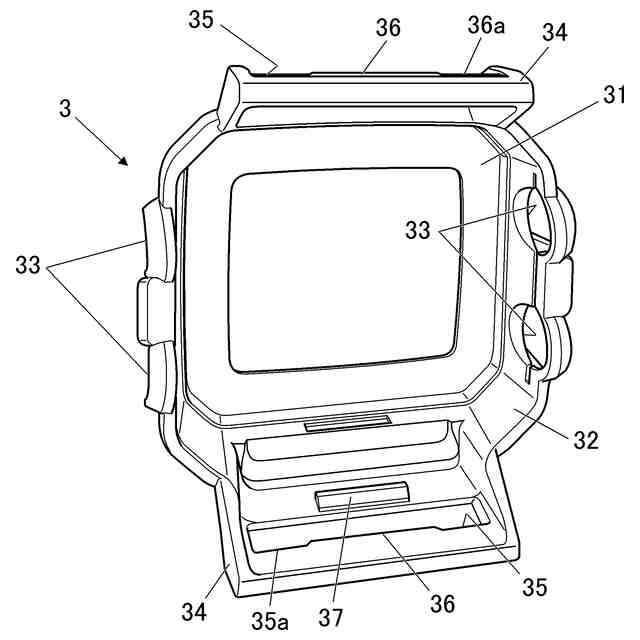 前記第2開口部は、当該第2開口部に挿通させた前記バンドの裏面に対向する辺に前記第2開口部内に突出する第2突起部を有している、
