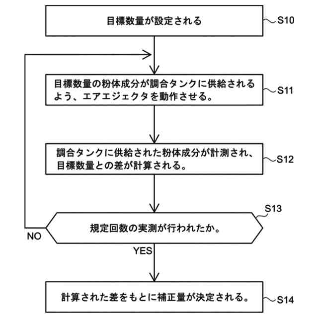 前記少なくとも1つの粉体供給系は、前記粉体成分を貯留する貯留容器と、前記貯留容器と接続され、前記貯留容器から吸引した前記粉体成分を前記調合タンクに移送する粉体移送部と、を有し、