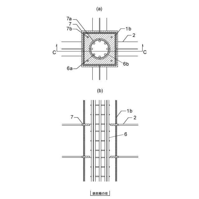 CFT構造の柱鋼管を薄くすると、大地震時に柱鋼管に局部座屈が発生し、柱耐力の低下が懸念される。その解決方法の一つとして、CFT構造に鉄筋籠を挿入することで、柱鋼管の局部座屈を抑制する方法がある。この場合も、鉄筋籠の断面寸法が大きいほど、柱鋼管の局部座屈を抑制する効果が高くなるが、ダイアフラムの形式によって、鉄筋籠の大きさが制限される問題がある。