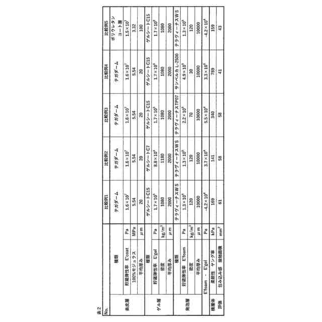 本発明[1]は、発泡層と、前記発泡層の一方面に配置されるゲル層とを備え、前記発泡層の23℃における貯蔵弾性率(E’
