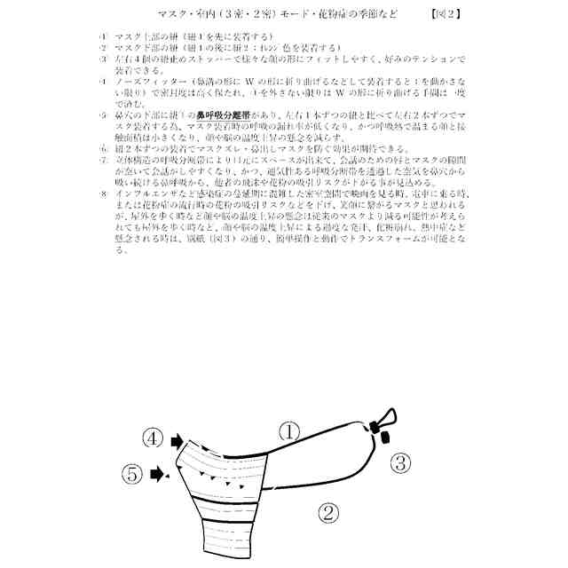 発明の詳細な説明【技術分野】 【0001】 飛沫による感染症や花粉症の流行期など、人が集まる閉鎖空間や混雑した街などを歩く時、もしくは花粉症などアレルギー性鼻炎などに悩む人々が増える季節など、マスク装着者の会話、運動、映画鑑賞、音楽フェス、地下格闘技などを観戦 応援したり食事会など、沢山の人々が集まる時の呼吸に係る飛沫感染のリスクや不安の軽減、もしくは花粉症などアレルギーにおける自己免疫力の過剰反応の回避、健全な免疫力を取り戻す鍵と言われる心肺機能を高めて、鼻呼吸を促す呼吸方法とマスク構造に関わり、インフルエンザ等の感染症に感染にしている可能性ある不特定多数の人々で混雑した場所での会話、飲食、ダンスなどソーシャルディスタンス近くの他者の吐いた息の飛沫を相当に吸う可能性ある者らの不安を減らし、感染症や花粉症の流行期などの望ましい呼吸について社会に発信し、鼻呼吸による脳のラジエータ効果、一酸化窒素の産生など健康効果を科学の目で見て知り学んで体験し、個人の健康効果、街の公衆衛生の改善、鼻呼吸の健康効果や予防の為のヘルスケアの情報など、楽しく見て知り学んで体験し検証する呼吸法とマスクに関する 引用(1) 鼻呼吸で万病予防!マスク着用で口呼吸になっていませんか (5月8日放送ゴジてれChu) 2020/05/18 #口呼吸 #新型コロナ #舌トレーニング マスク着用で口呼吸の人が増加!鼻呼吸で万病予防 ユーチューブ 中テレ公式チャンネル マスクをつけて過ごすことが多くなっている今、普段より呼吸が苦しくなり知らず知らずのうちに口呼吸になりがちです。しかし口呼吸は、鼻呼吸と違って空気中の異物が取り除かれることなく体の中に入ってきたり、冷たく乾燥した空気がそのまま体の中に入ってきてしまうため全身の病気につながるリスクが高まってしまうんです。 日本人の半数は口呼吸をしてしまっているというデータもあり、ぜひ鼻呼吸に改善したいですよね。口呼吸の原因は「ベロ(舌)」にあるということで、専門家にベロの筋トレ「ベロトレ」を教えていただきましたよ 専門家 口呼吸問題の第一人者 みらいクリニック(福岡県) 今井 一彰院長 出演 中テレ 石井佑弥アナウンサー 長江麻美アナウンサー 「からミル シル マナブから福島ドクターズT 」中川久美ナビゲーター 備考 「からミル シル マナブから福島ドクターズT 」 毎月第三土曜日に放送している福島中央テレビ医療情報番組 続きを表示(約 18,000 文字)【0002】 1998年ノーベル生理医学賞に受賞したイグナロ博士ら3人が発見の功績で受賞した、循環器系における情報伝達物質の一酸化窒素を産生する鼻呼吸の健康効果を見て知り学んで検証し社会への発信を広く試みる呼吸法とマスクに関する 引用(2) ルイ イグナロ博士 ウィキペディア 【0003】 2016年米ノースウエスタン大の医学研究者の発信したRhythm of breathing affects memory and fearに関し、呼吸(鼻)のリズムが人間の脳に電気的活動を引き起こし、感情的な判断や記憶の想起を高める事を発見した論文に似た経験を体験する可能性が期待できるニューロサイエンスに関わる呼吸方法やマスクに関する 引用(3) ノースウエスタン大学 Rhythm of breathing affects memory and fear December 7, 2016 By Marla Paul ユーチューブ2016年12月8日 What we found is that the act of breathing actually increases activity in parts of the brain that are important for smell, emotion and memory. 私たちが発見したのは、呼吸という行為が、嗅覚、感情、記憶にとって重要な脳の部分の活動を実際に増加させるということです And these changes in brain activity also actually lead to cognitive changes over the course of the breathing cycle as well. そして、脳活動におけるこうした変化は、実際には、長期にわたる認知の変化にもつながります。呼吸サイクルの経過も同様です And these changes in brain activity also actually lead to cognitive changes over the course of the breathing cycle as well. We found that the recognition of fearful facial expressions is actually faster during inhalation compared to exhalation. So this is showing activity in the brain -- in the emotion part of the brain. そして、これらの脳活動の変化は、実際に呼吸サイクルの過程での認知の変化にもつながります。 実際、恐ろしい表情の認識は、吐き出すときよりも吸うときのほうが速いことがわかりました。つまり、これは脳の活動、つまり感情の部分の活動を示しているということです That's the amygdala - during nose breathing and mouth breathing. And you can see the black line is the person's breathing signal so when they begin to inhale, you see these big increases in activity when inhaling through the nose whereas there is no significant increase when breathing through the mouth. それは、鼻呼吸と口呼吸の扁桃体です。 黒い線がその人の呼吸信号であることがわかります。つまり、息を吸い始めると、呼吸量が大幅に増加するのがわかります。鼻から吸うときの活動は増加しますが、口から呼吸するときは顕著な増加はありません We could potentially use this fact to our advantage. For example if you are in a dangerous environment wit