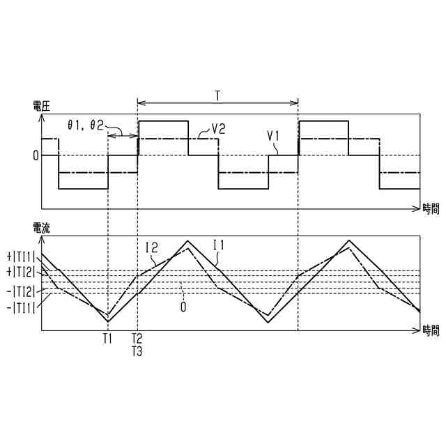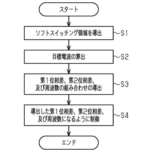 【解決手段】3レベルの電圧がローレベルからミドルレベルに立ち上がる第1時刻と2レベルの電圧がローレベルからハイレベルに立ち上がる第2時刻との差を第1位相差、第1時刻と3レベルの電圧がミドルレベルからハイレベルに立ち上がる第3時刻との差を第2位相差とする。制御部は、要求電力を出力できる第1位相差と、第2位相差と、2レベルの電圧及び3レベルの電圧の周波数との組み合わせであって条件1と条件2を満たす組み合わせとなるように1次側フルブリッジ回路及び2次側フルブリッジ回路の制御を行う。