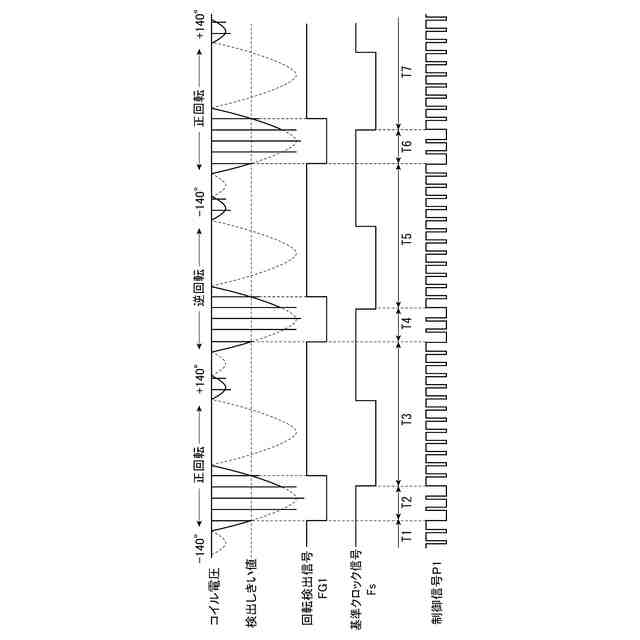 変形例におけるコイル電圧、回転検出信号、基準クロック信号、制御信号を示すタイミングチャートである。