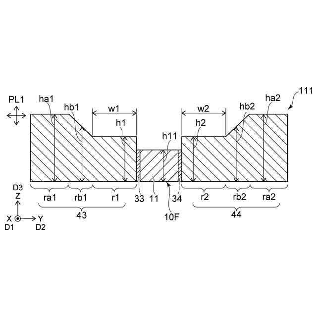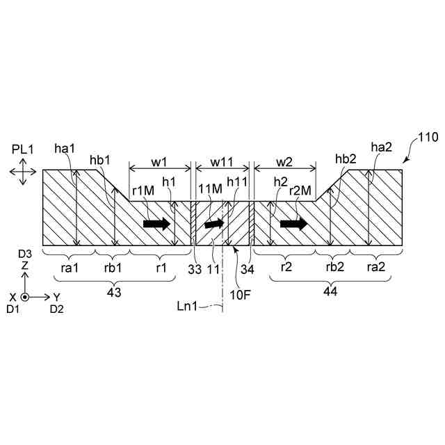 前記第1領域の第3方向における第1領域長は、前記第1他領域の前記第3方向における第1他領域長よりも短く、