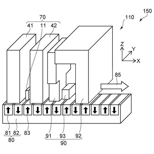 再生部70は、第1シールド41、第2シールド42、第3シールド43、第4シールド44、及び、第1磁性部材11を含む。