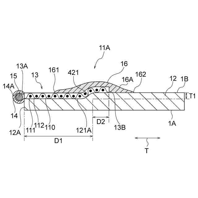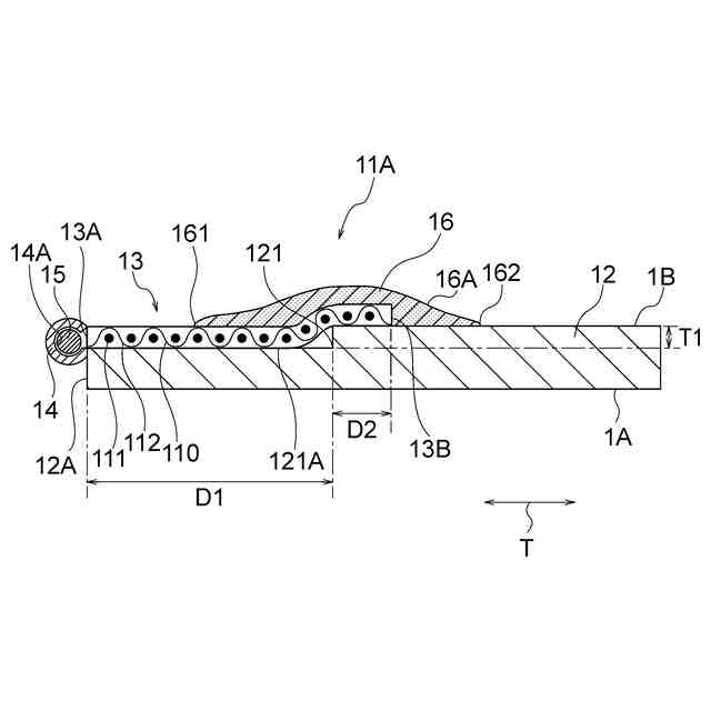 継手部が設けられたベルト本体の一方の端部に着目した、他の実施形態に係る搬送用ベルトの側断面構成(2)を示す側面断面図である。