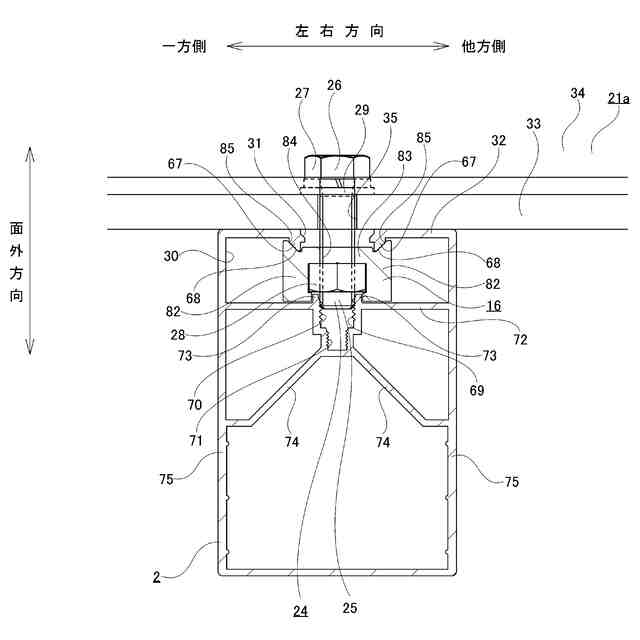 ボルトとナットとを備えた締結部材により化粧材を化粧材側金具に固定する場合、ナットを化粧材の内側に配置し、かつ、ボルトの頭部を金具側に配置すれば、締結部材を外部から目立たないようにすることができる。