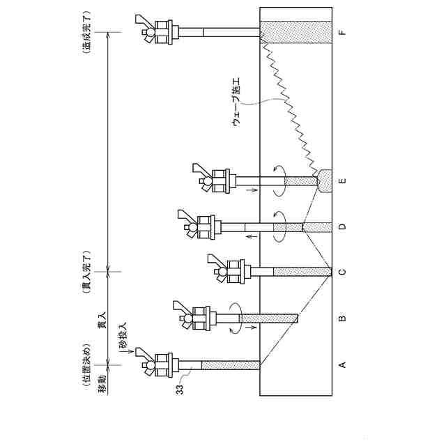 締固め杭造成装置を用いた砂杭打設による締固め工法について説明するための図である。
