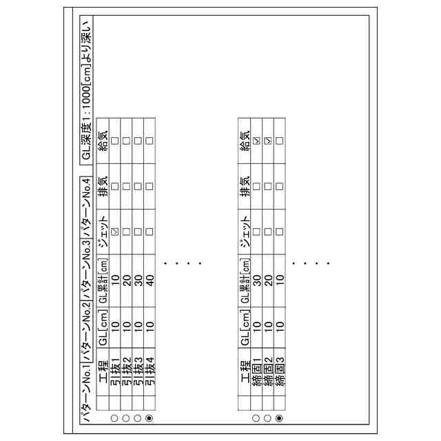 本実施形態に係る砂杭造成システムにおける各パターンについて説明するための図である。
